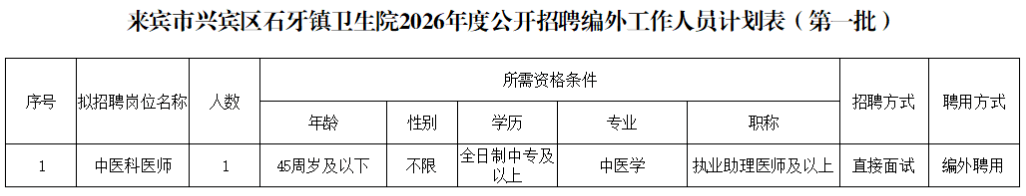 兴宾区基层公立医院编外人员合同期未满且离职半年以内的人员;
